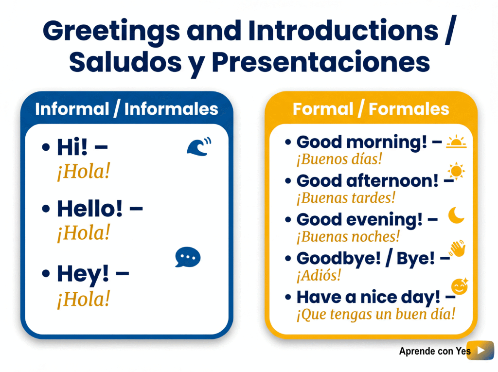 ¿Quieres aprende inglés - learn english online - pero no sabes por dónde empezar? Los saludos y las presentaciones son lo primero que necesitas dominar. En esta guía de inglés para principiantes - english for beginners - aprenderás las frases más importantes para comunicarte con confianza, tanto en situaciones formales como informales.